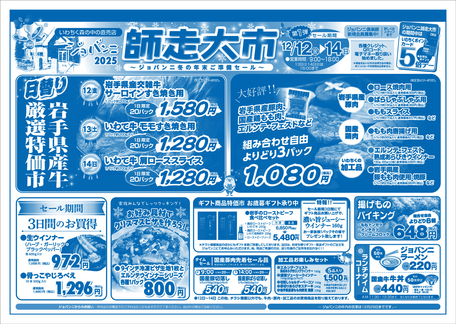 ジョバンニでは、12月12日(金)〜14日(日)までの3日間、